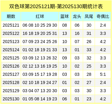 其中红球奇偶比为4:2,龙头号码开独特数01,凤尾号码开独特数23。